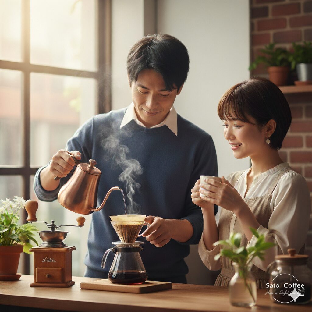 忙しい日常の中で、ほんの数分でも誰かのために、または自分のために丁寧に淹れるコーヒーは、心を整える特別な時間になります。スペシャルティコーヒーは、その一杯に驚くほど繊細な香りと甘みが詰まっています。お店のような味わいを再現するには、豆選びや温度だけでなく、「淹れ方」にも小さなコツがあります。この記事では、Sato Coffeeが実践するハンドドリップの基本から、味わいを左右する蒸らしや抽出のポイントまで、あなたの一杯を“至福の時間”に変える方法を紹介します。